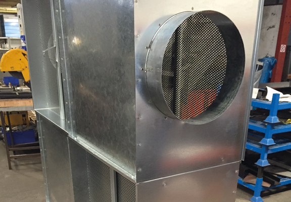 The project involved laser cutting the material to size, bending the boxes to accurate tolerances, swaging the different size spigots, spot welding the boxes together and then applying foam to the internal surfaces to insulate the boxes.